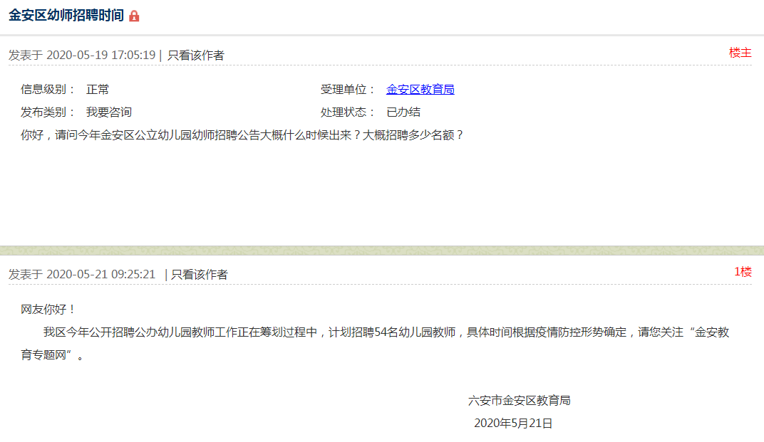 我區(qū)今年公開招聘公辦幼兒園教師工作正在籌劃過程中,計劃招聘54名幼兒園教師,具體時間根據(jù)疫情防控形勢確定。