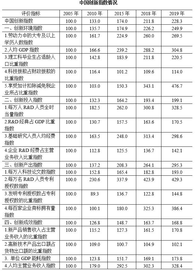 中國創(chuàng)新指數(shù)情況